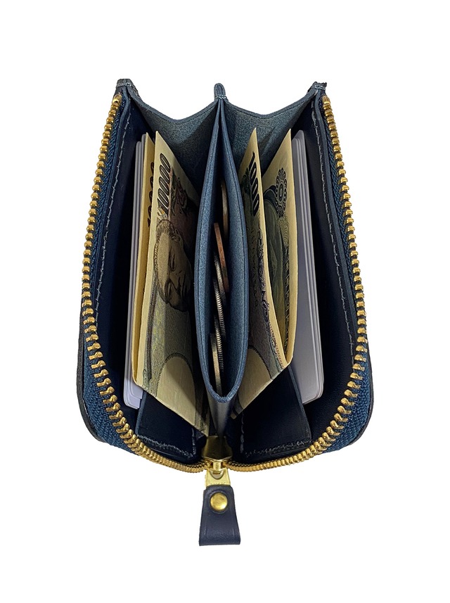 RE.ACT、Lファスナー財布。カードポケットは少し膨らみを持たせて製作していますので、ひとつのカードポケットにカードが3枚収納可能です。コンパクトサイズですので、メインのお財布としては勿論、セカンドウォレットとしても最適です。