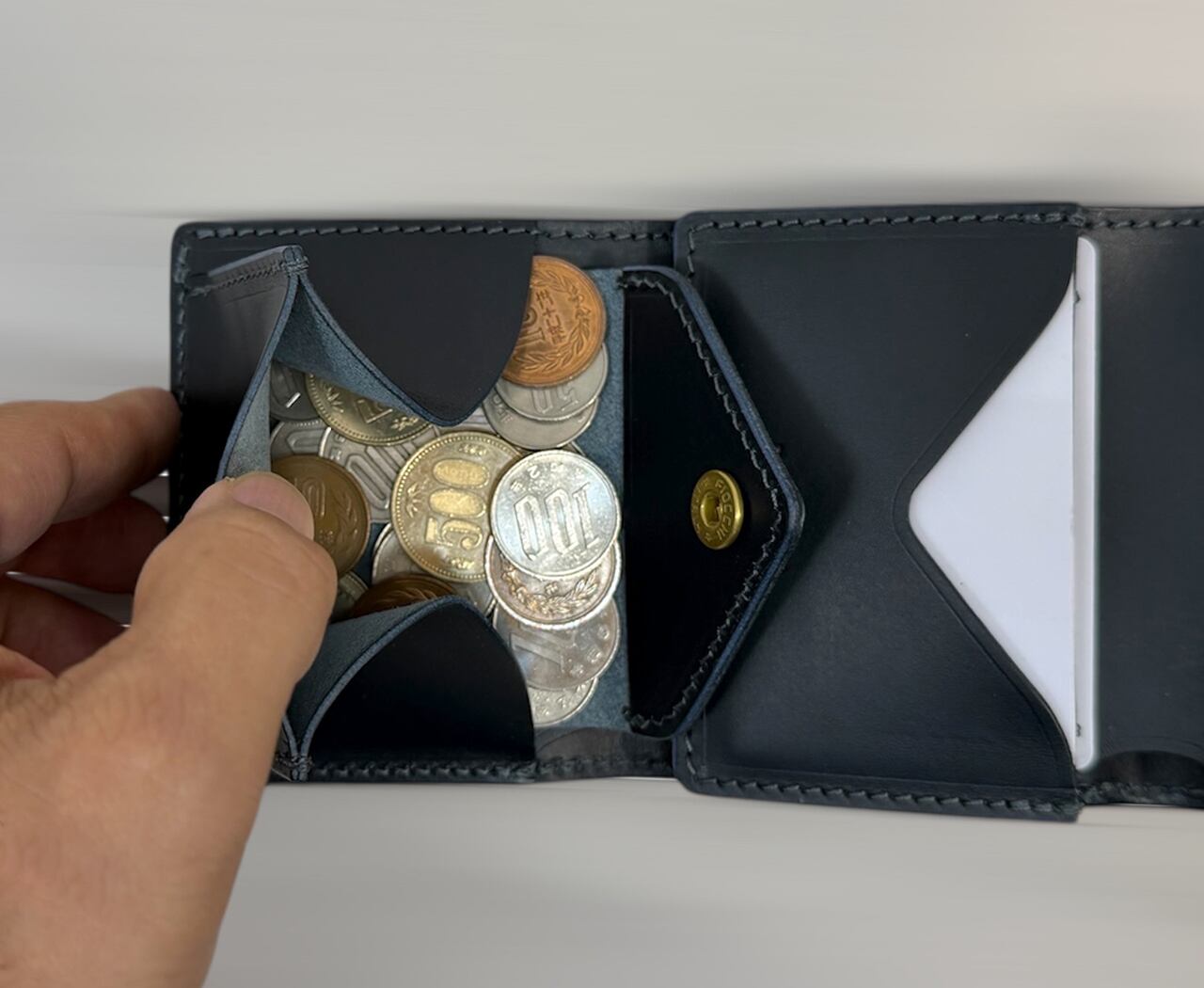 手のひらサイズの三つ折りミニ財布。