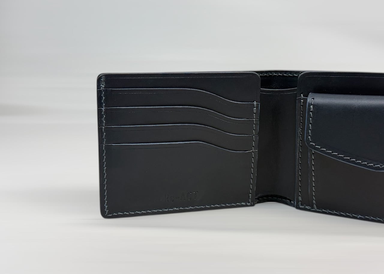 Re-ATCの藍染レザーは、日本伝統の天然藍と合成藍を適度に調整し特殊な技法で精製した大和藍を使用。職人の手で一枚ずつ染め上げた特別な革です。
