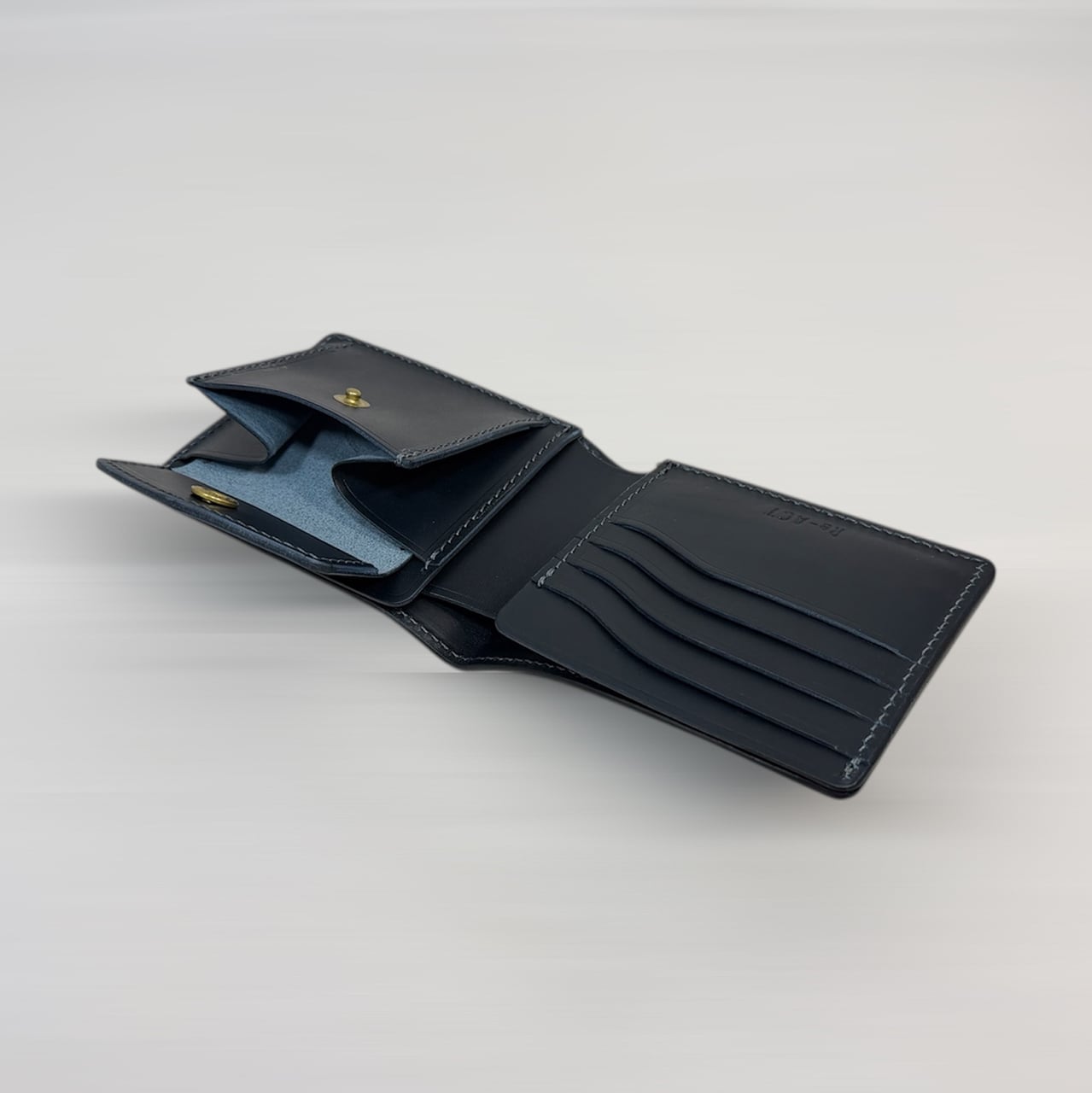 このレザーは、単なる色ではなく『育つ青』使うほどに藍色が変化し、手の脂や日光、時間と共に革の表情が育っていきます。まさに持ち主とともに成長する素材です。