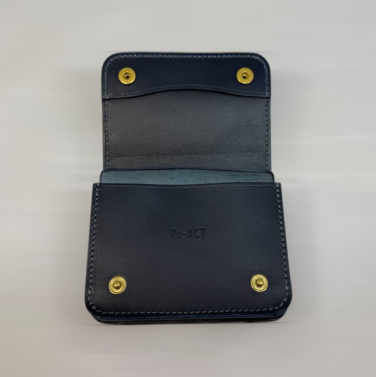 Re-ACTで、通常の染色革とは異なる『深い青』を求めて、時間と温度、革との相性を見極めながら、何度も染め重ねることで奥行きのある色合いが生まれます。