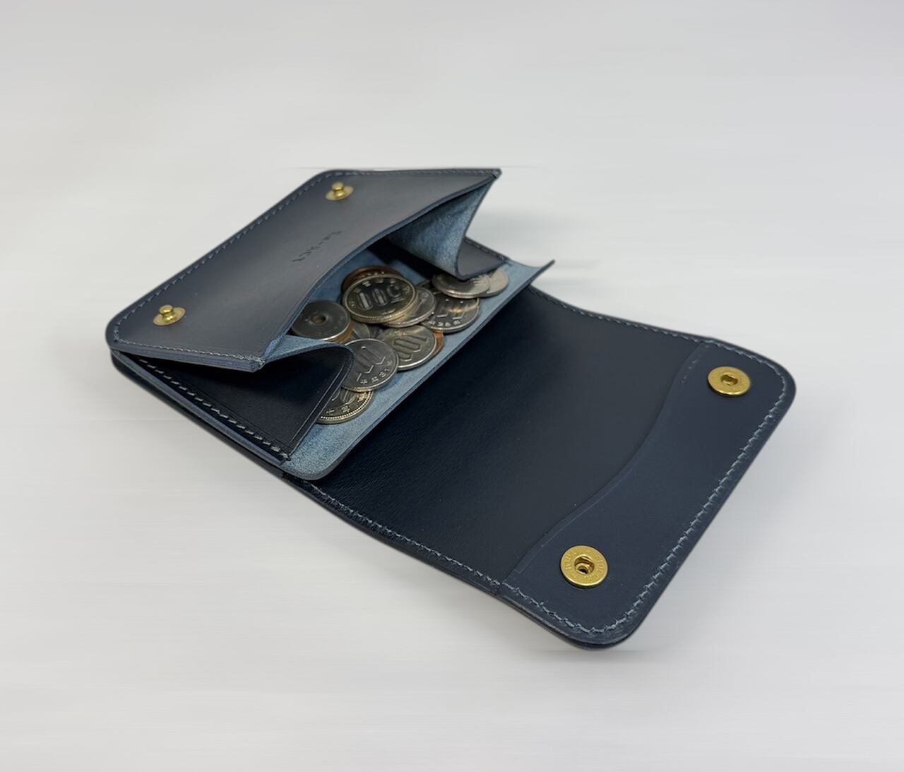 このレザーは、単なる色ではなく『育つ青』使うほどに藍色が変化し、手の脂や日光、時間と共に革の表情が育っていきます。まさに持ち主とともに成長する素材です。