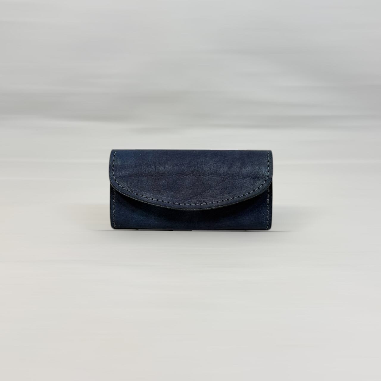 このレザーは、単なる色ではなく『育つ青』使うほどに藍色が変化し、手の脂や日光、時間と共に革の表情が育っていきます。まさに持ち主とともに成長する素材です。