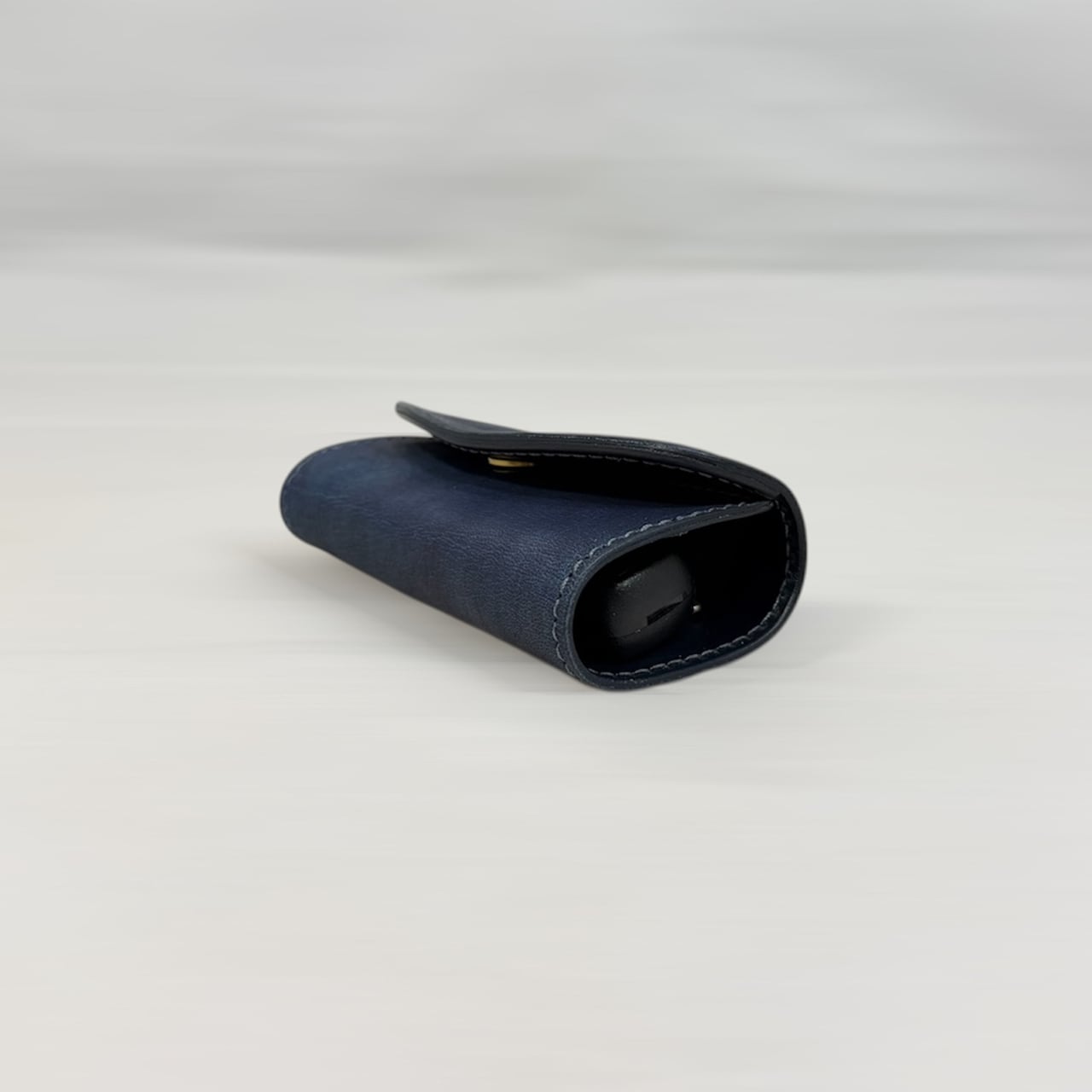 このレザーは、単なる色ではなく『育つ青』使うほどに藍色が変化し、手の脂や日光、時間と共に革の表情が育っていきます。まさに持ち主とともに成長する素材です。