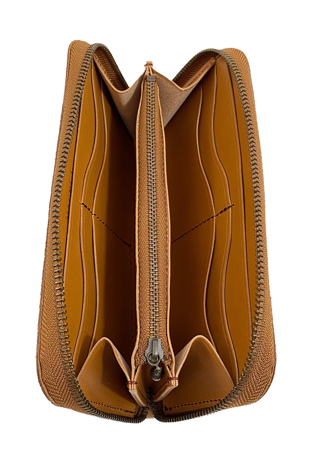 MAGNET定番のROUND FASTENER LONG WALLET。お札・小銭・カード収納はもちろん、レシート・領収書関連の紙類は仕切り別に分けて財布の中で整理整頓出来ます。更にファスナーで全開するので、中が一目瞭然。あるといいなが沢山詰まったシンプルなラウンドファスナー長財布です。ファスナーは日本製のYKK社のファスナーを使用しています。