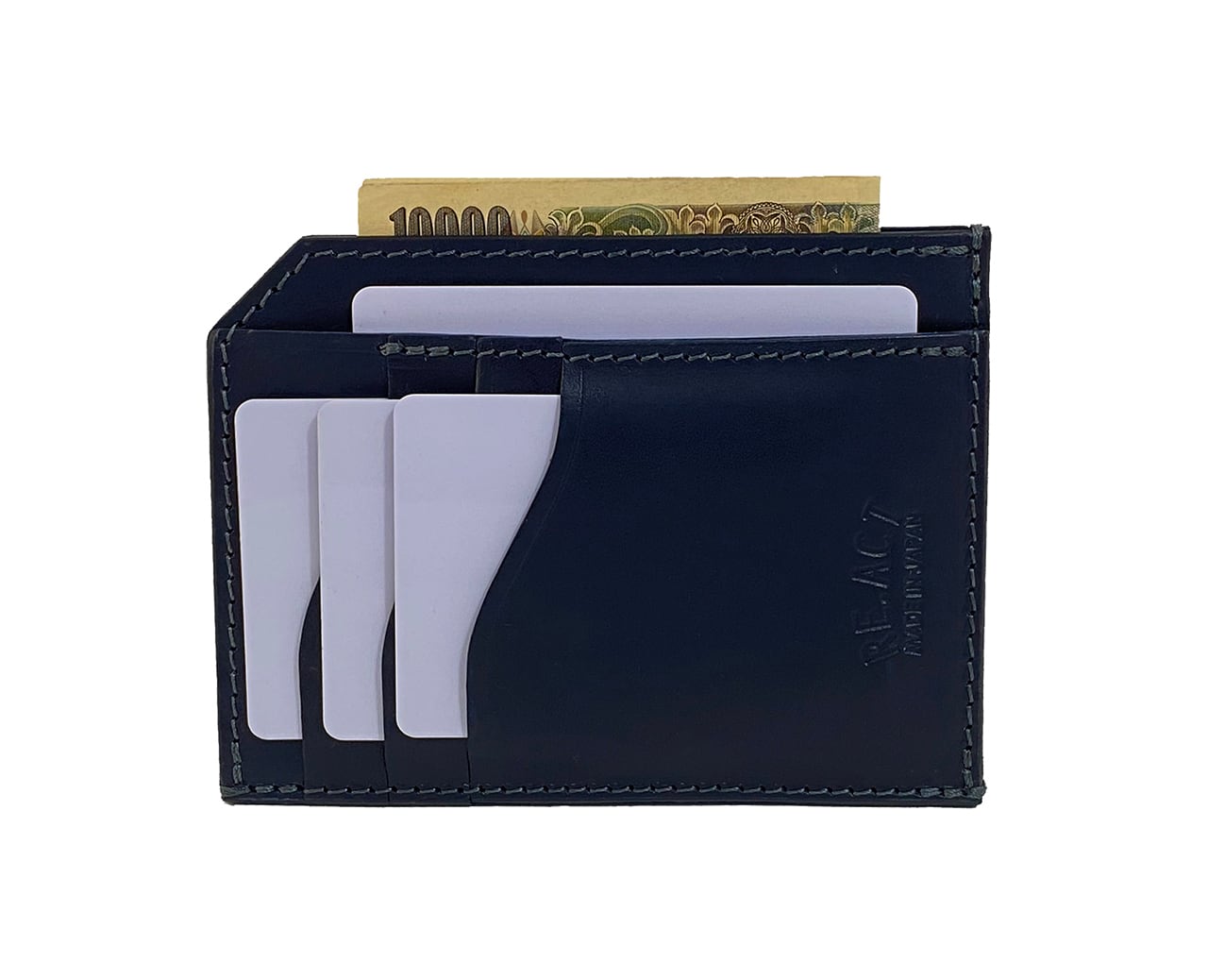 RE.ACTスリム財布。スマホサイズで手にもしっかり馴染むサイズ。札入れ、カードポケット3つ、コインポケットなど、こう見えて必要最低限の収納はおさえているので、使い勝手も申し分なしです。ファスナーはユニバーサルファスナーを使用。キャシュレス時代で財布がコンパクト化されている今、RE.ACTがご提案するコンパクト財布です。