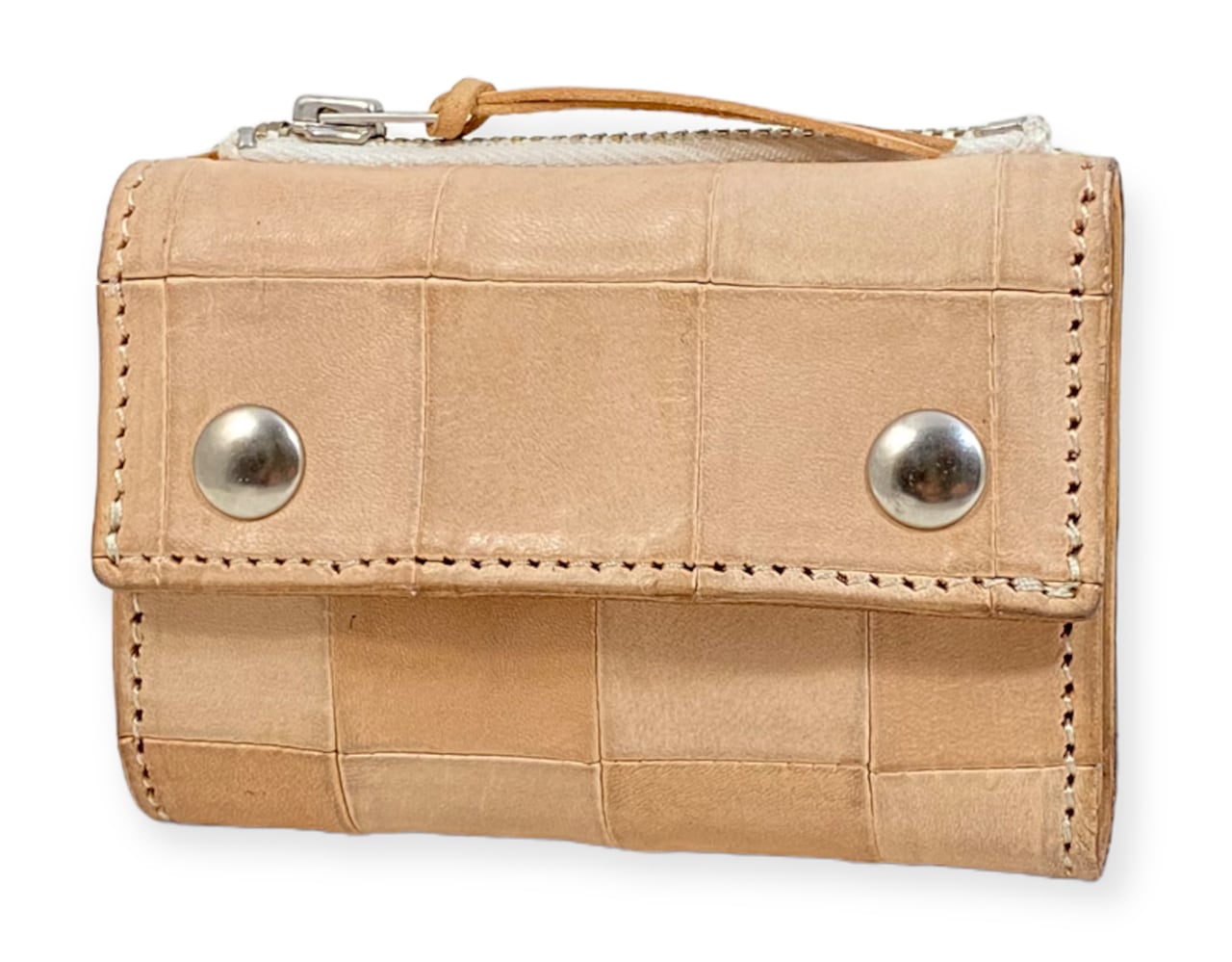 また国内のタンナーによる鞣しで、職人が一枚一枚丁寧に加工をしています。その日の気候や湿度などを見極めて微妙に仕事を調節しながら作られた革です。表面は本革を一つ一つ丁寧に縫い合わせたPATCHWORKで作られており、他にはない特別な質感をお楽しみ頂けます。