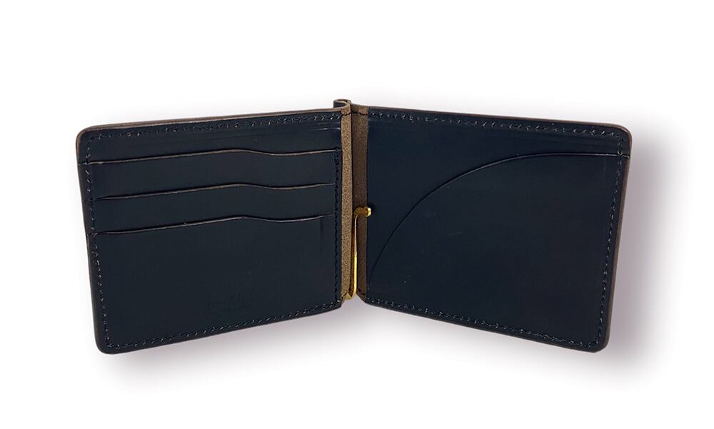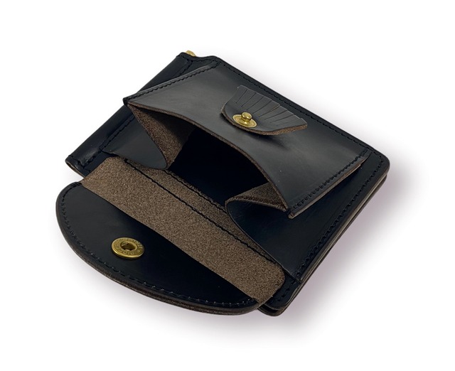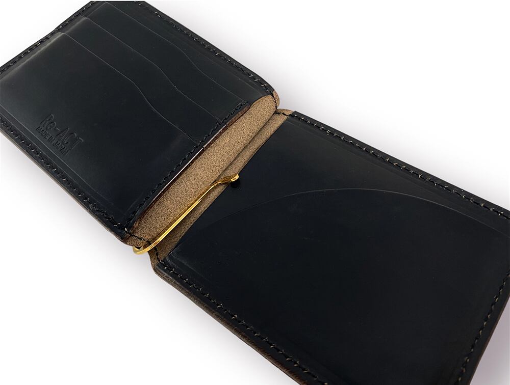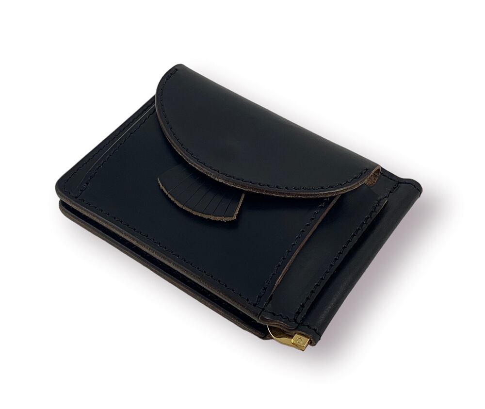 マネークリップ財布。必要最低限の機能を兼ね備えたコンパクト財布です。スナップボタンはイタリアのFiocchiを使用。